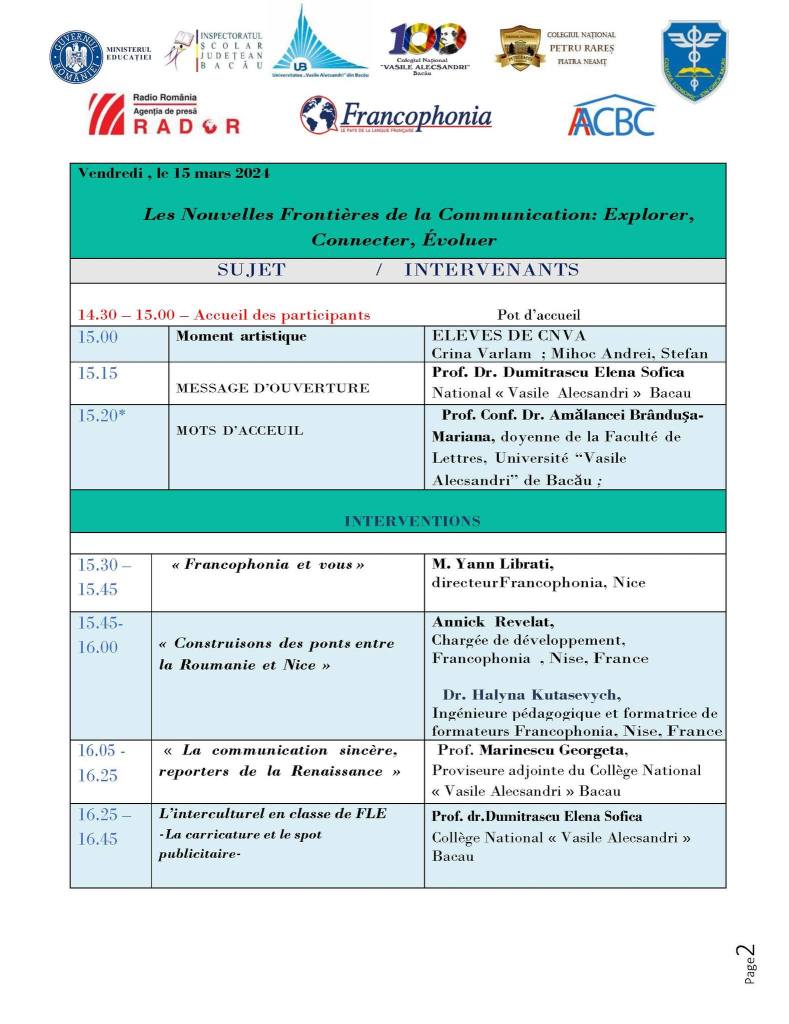 #MinisterulEducației, #UniversitateaVasileAlecsandriBacău, #Francophonia Nice, #InspectoratulȘcolarJudețeanBacău, #ColegiulNaționalVasileAlecsandriBacău, #ACBC, #AsociațiaAccentulCircumflexbacău, #RADOR, #ColegiulEconomicIonGhicaBacău, #ColegiulNaționalPetruRareșPiatraNeamț