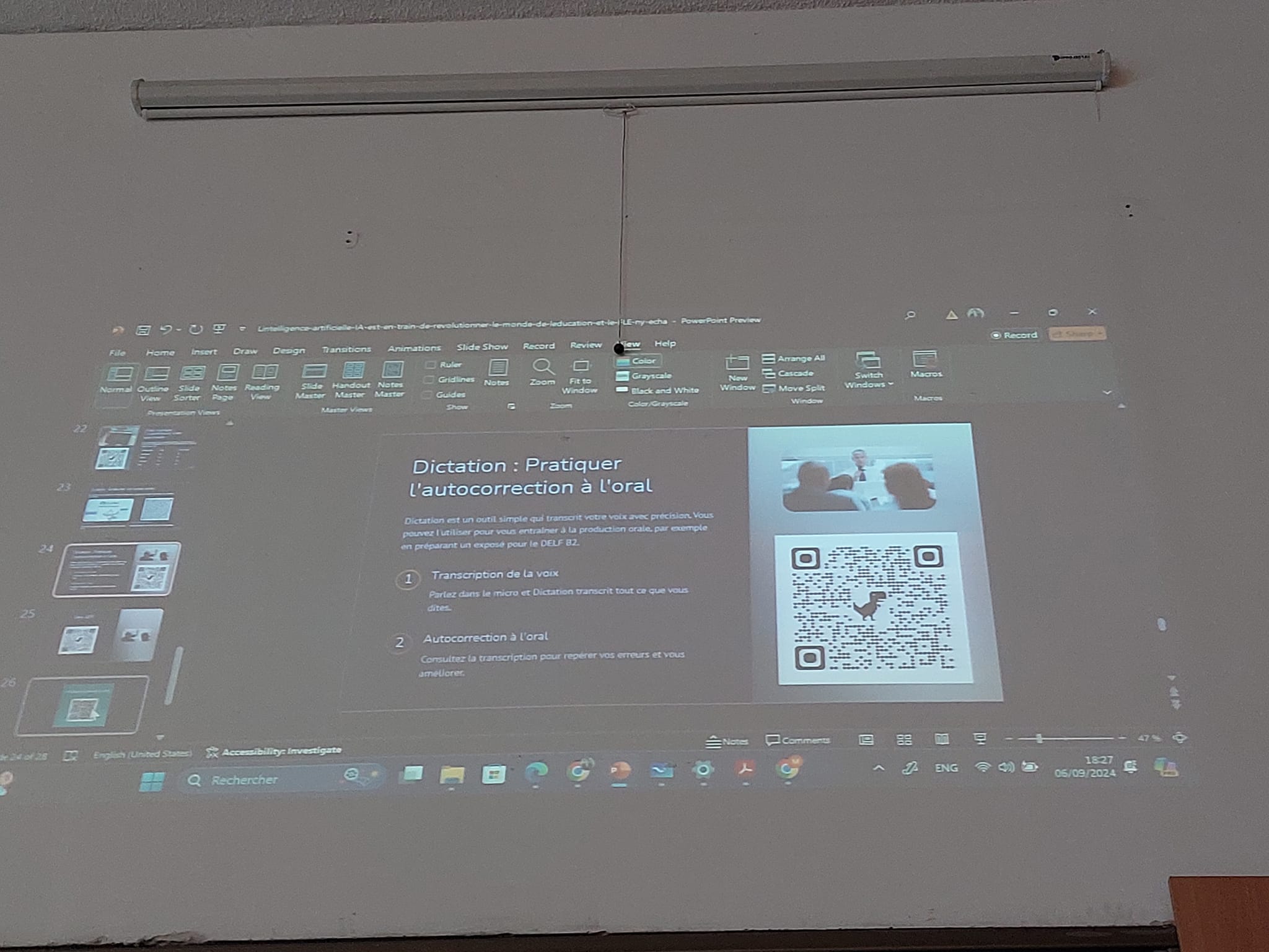 Un autre aspect fascinant de l’atelier a été l’utilisation des chatbots dans l’enseignement du FLE. Ces programmes d’intelligence artificielle peuvent simuler des conversations avec les élèves, leur permettant de pratiquer l’expression orale et la compréhension de manière interactive, tout en recevant des retours en temps réel. Miranda Lomidzéa expliqué que les chatbots sont particulièrement utiles pour les apprenants qui n’ont pas toujours la possibilité de parler français en dehors de la classe. Ils offrent un espace sûr où les élèves peuvent pratiquer à leur propre rythme, sans la pression d’un interlocuteur humain.