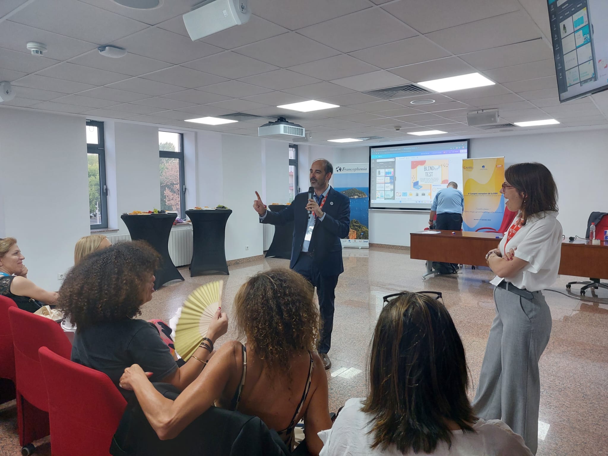Enfin, l’atelier „Chansons françaises et francophones d’hier et d’aujourd’hui”, animé par Yann LIBRATI, directeur de Francophonia Nice, et Constantin DRĂGAN, formateur Francophonia Nice, a démontré la puissance de la musique pour connecter les enseignants de FLE et les apprenants avec la langue française d’une manière émotionnelle et mémorable. Ce fut également un moment festif lors de la soirée interculturelle organisée en partenariat avec l’ARPF – Association Roumaine des Professeurs Francophones.