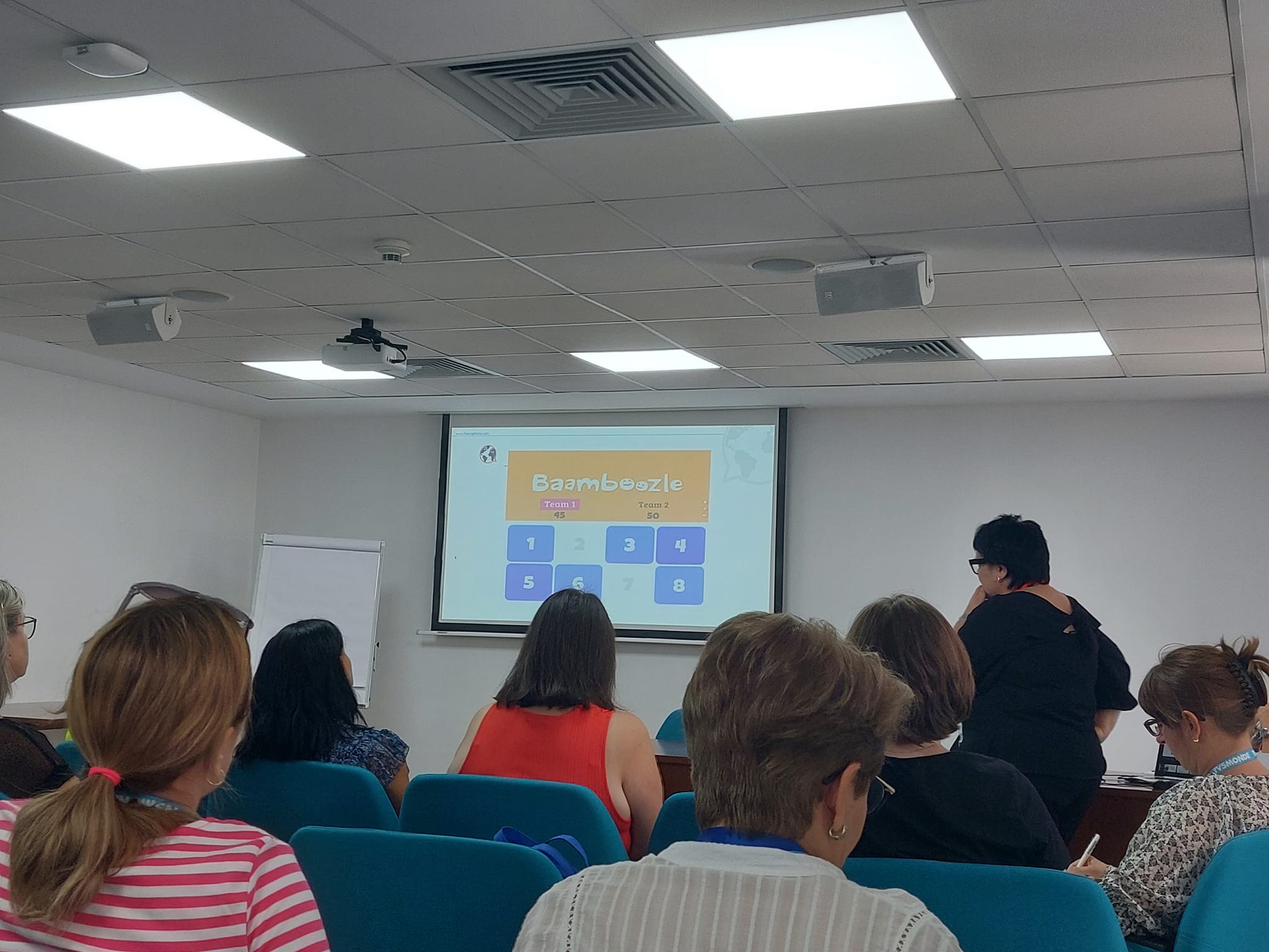 Nous avons également discuté de la manière d’adapter ces techniques à différents niveaux de compétence et de maturité. Halyna Kutasevych a partagé des exemples concrets de scénarios de gamification qu’elle utilise dans ses classes, l’objectif étant de rendre l’apprentissage aussi interactif que possible, tout en assurant un équilibre entre le plaisir et les objectifs pédagogiques.