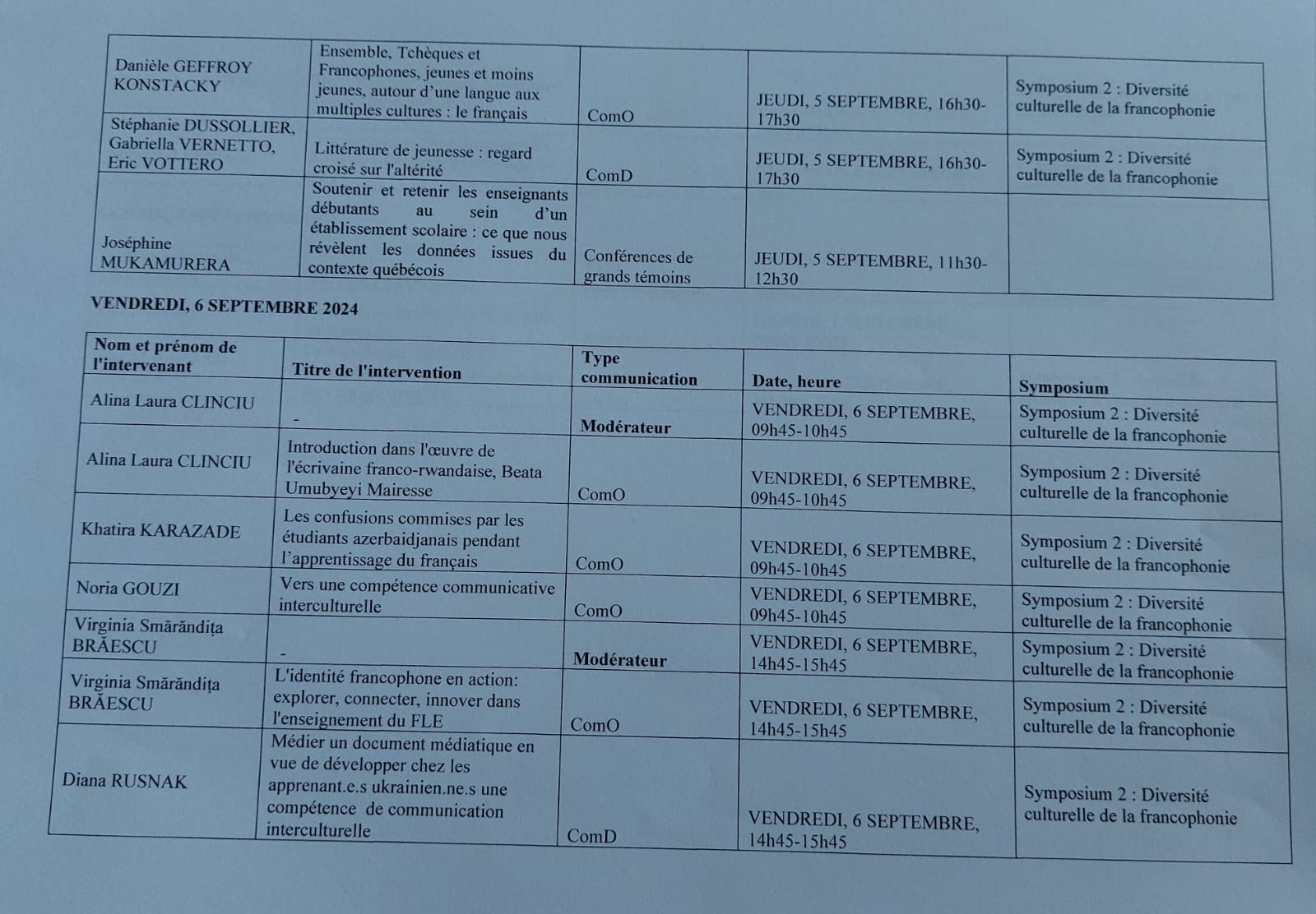 En tant que modératrice d’une des sessions de communications dans le cadre du Symposium No. 2 sur la Diversité culturelle de la Francophonie, j’ai eu le privilège d’échanger avec Jean Pierre CUK de l’Université Côte d’Azur, membre et rapporteur du Commité scientifique restreint du 4e Congrès européen de la FIPF à Bucarest. Ce symposium m’a permis d’approfondir la réflexion sur la manière dont la diversité culturelle enrichit non seulement la langue française, mais aussi notre manière d’enseigner et d’apprendre les cultures francophones.