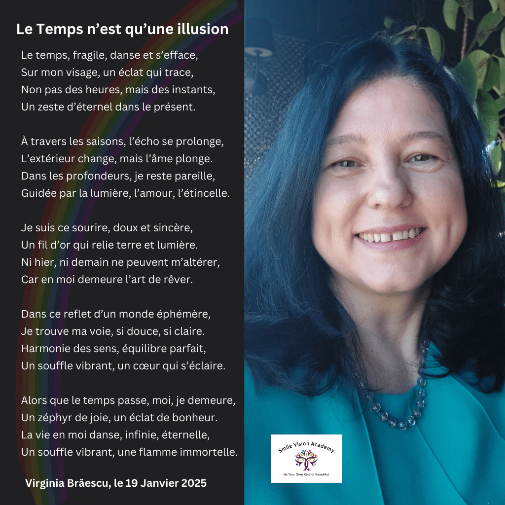 Publicat în Écriture créative, Călătoria sufletului, Poésies, Smile Vision Academy, Timpul, Zâmbetul