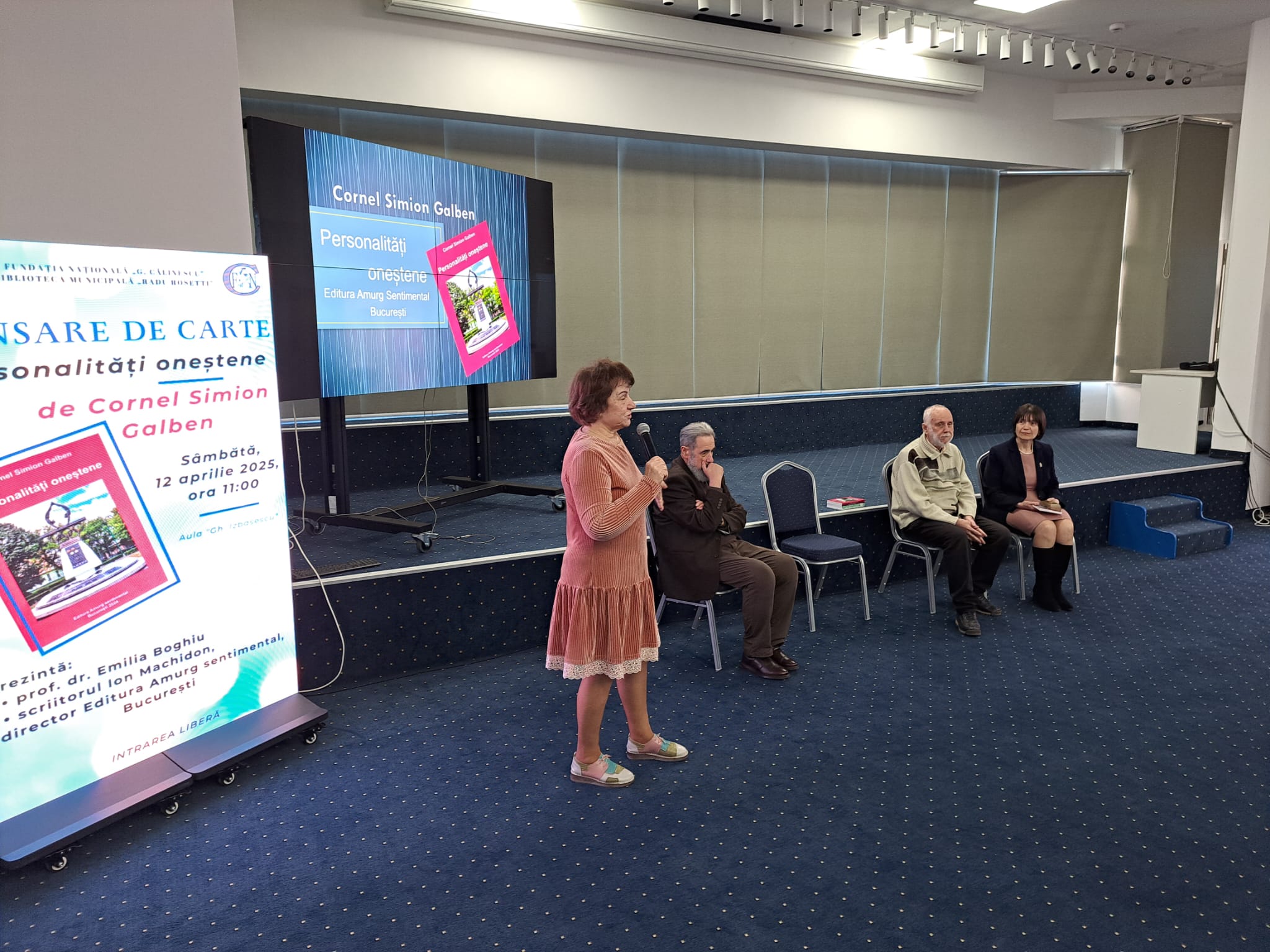 L’événement a été modéré avec raffinement, diplomatie et empathie par mon ancienne professeure au lycée, Dr. Emilia Boghiu, hôtesse généreuse et voix équilibrée du dialogue, la nouvelle présidente de la Fondation Nationale „George Călinescu” (Fundația Națională „G. Călinescu”).