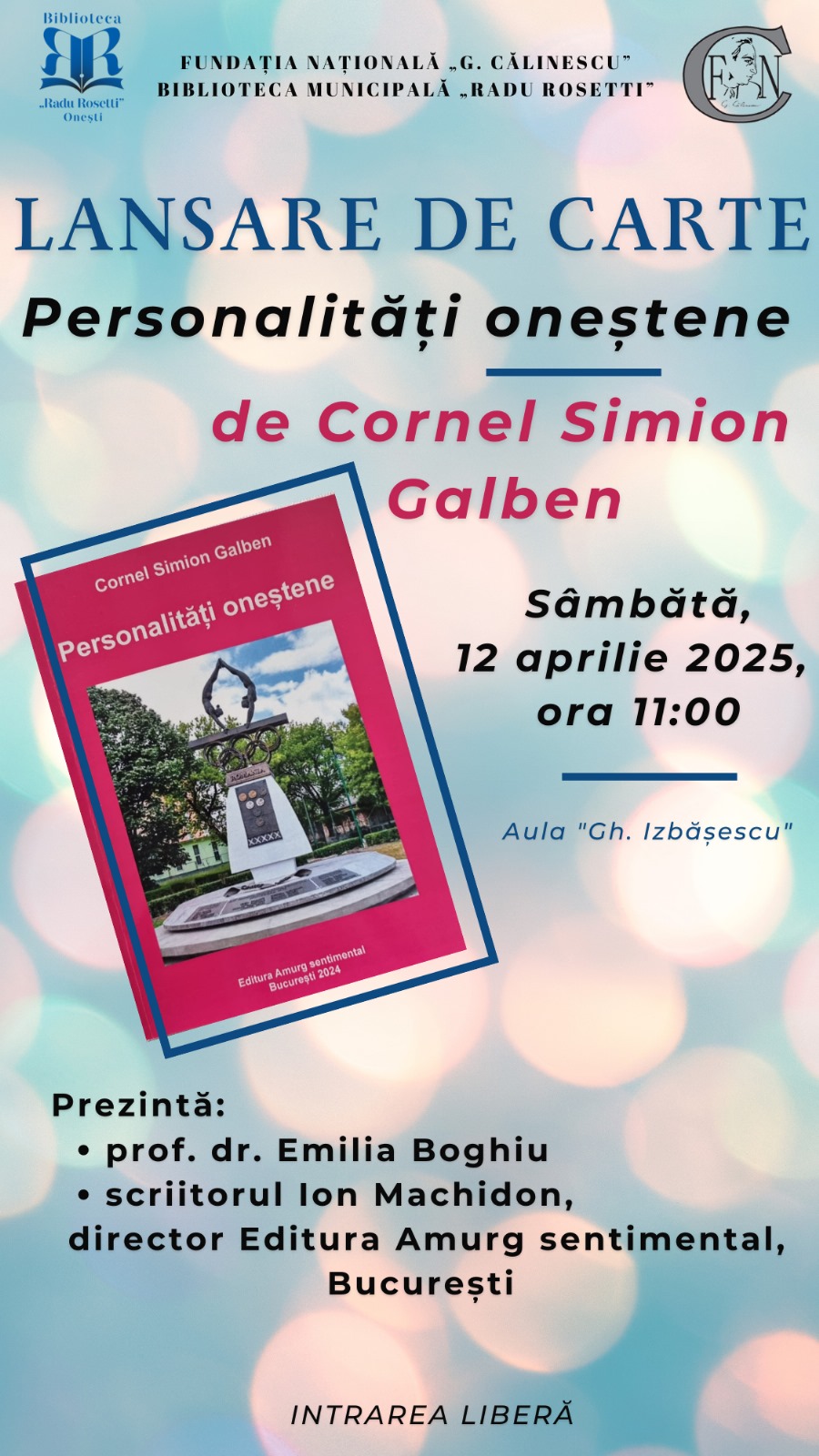 La Biblioteca Municipală „Radu Rosetti”, în inima Oneștiului, am asistat la reactivarea unui „spiritus loci” autentic. Volumul „Personalități oneștene” de Cornel Simion Galben, lansat într-un cadru intim și luminos, a readus în atenție valori, oameni și fapte care definesc identitatea noastră locală.