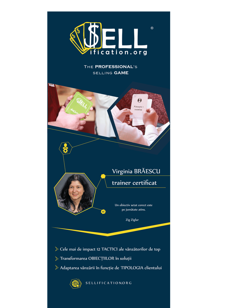 NLP practitioner, Practician în metoda de comunicare ESPERE, Public speaker, Dream Manager, Trainer certificat SELLification – The Professional’s SELLing Game.